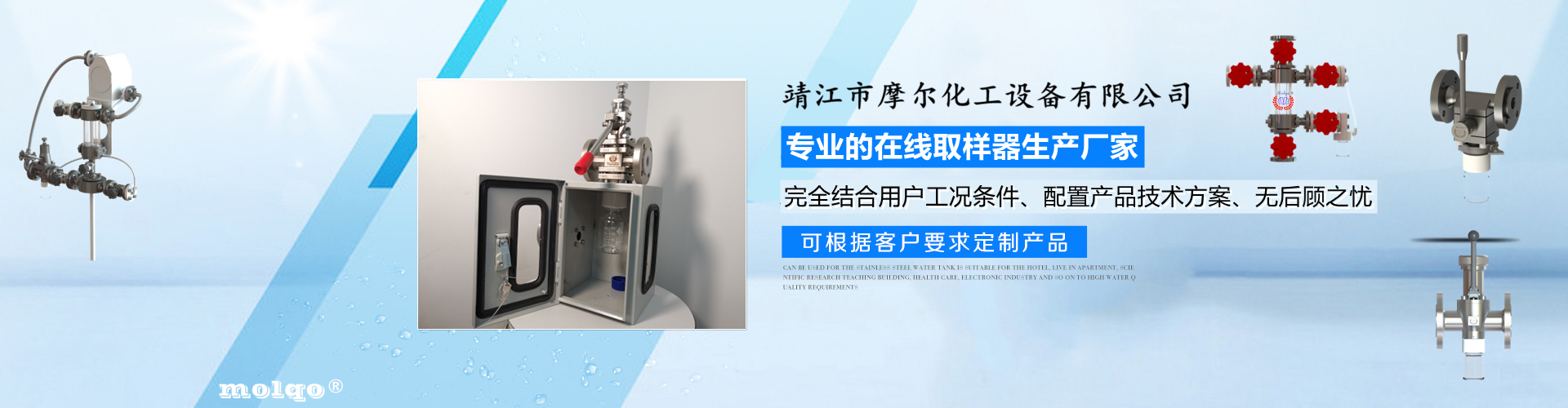 靖江市摩爾化工設備有限公司位于蘇中明珠——江蘇省靖江市城南工業園區東進路北側天元艾爾瑞內,另有生產基地位于靖江市經濟技術開發區新號路1號鼎電科技園內。我公司由數名長期從事化工生產、氟塑襯里模具開發以及機械自控設備的專業人員共同合作成立,致力于提供客戶最優的高效在線取樣、反應及精餾分離設備,為客戶提供合理的設備選型方案,以幫助客戶提高綜合生產效率以及改善生產現場環境為目標。 本公司主要制造及銷售的產品有:釜用在線取樣裝置,管道取樣閥,釜用清洗噴淋裝置、搪玻璃設備、GMP專用搪玻璃設備、氟塑襯里設備、攪拌器、釜用機械密封、氣動閥門及搪玻璃管道、襯氟閥門管道、非標不銹鋼容器,精餾塔塔器、片式冷凝器及PTFE密封件、鋯、鈦、鉭、鎳等加工件制品。我司是一家集研發銷售、設計咨詢服務于一體的專業···| 临夏市 | 兴业县 | 枣庄市 | 绥滨县 | 苍南县 | 潜山县 |